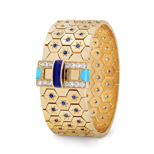 Ludo bracelet. 18K gold, sapphires, lapis lazuli, turquoise, diamonds. No.VCARP4KG00Gemstones Turquoise: 2 pcsSapphires: 69 pcs,...