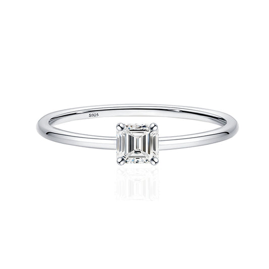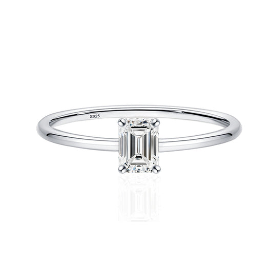 Mozambican diamond 0.8ct rectangular 4 * 6mm emerald cut S925 sterling silver ring women's simple versatile diamond ring wholesale