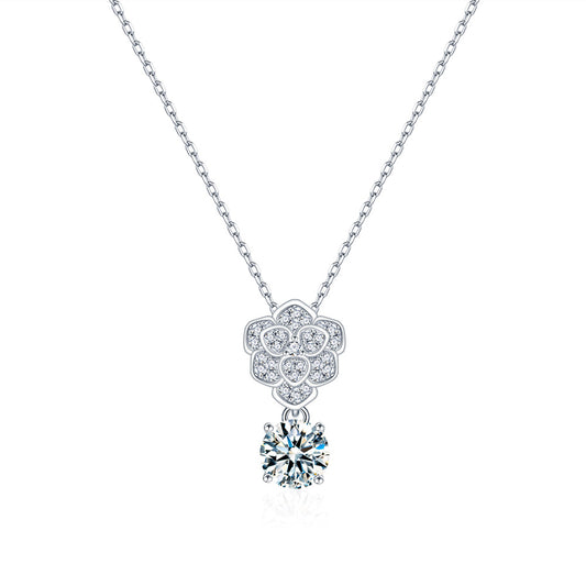 New 1ct mozzarella diamond camellia necklace 925 sterling silver collarbone chain fashion light luxury pendant live jewelry wholesale