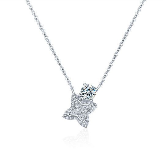 New tassel plum blossom necklace inlaid with 1ct moissanite 925 sterling silver pendant collarbone chain female Internet celebrity jewelry wholesale