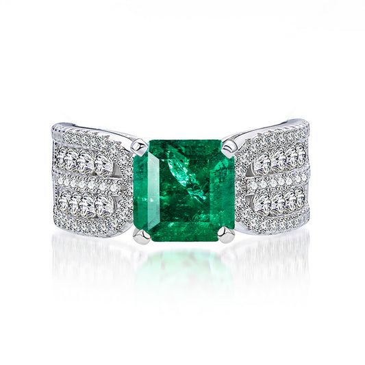 New square 7 * 7mm simulation with cotton emerald ring women's European and American ins niche design open gemstone ring