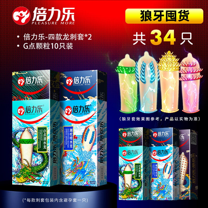 Beilile Condom Sheep Casings Wolf Teeth Barbed Orgasm Durable Pack Special Shaped Sex Condom Large Granular Artifact