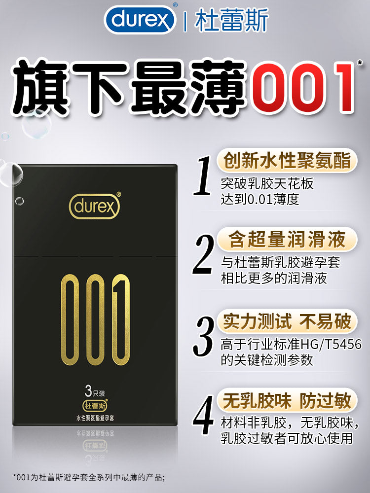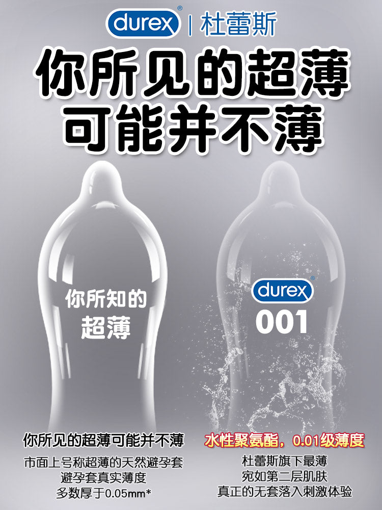Durex 001 condom hyaluronic acid ultra-thin sex interest naked into the genuine official flagship store male condom byt