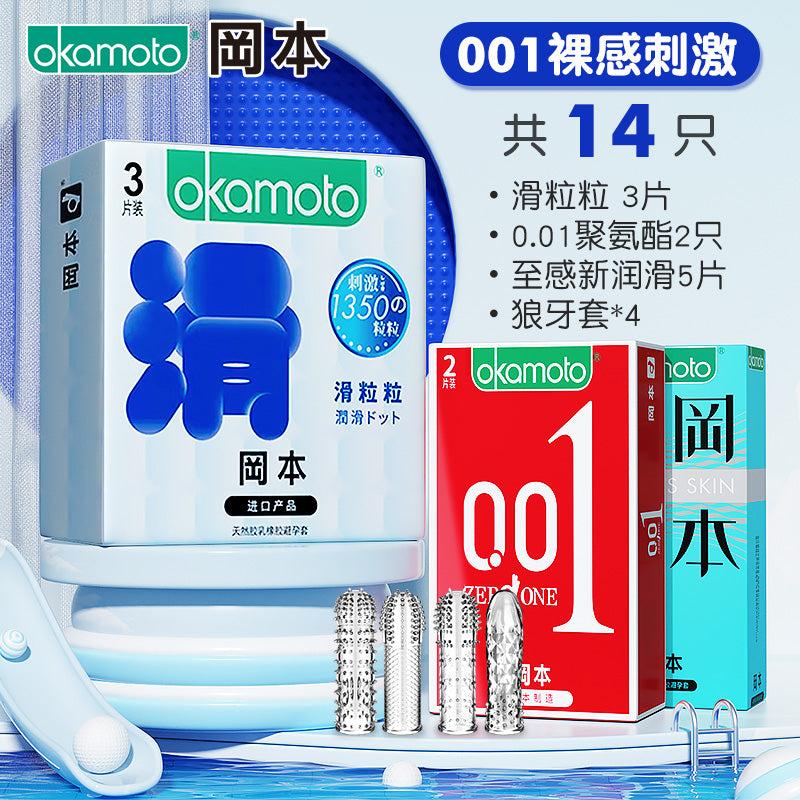 Okamoto condom wolf tooth genuine condom ultra-thin flagship store sex perversion 001 men with thorns large particles t