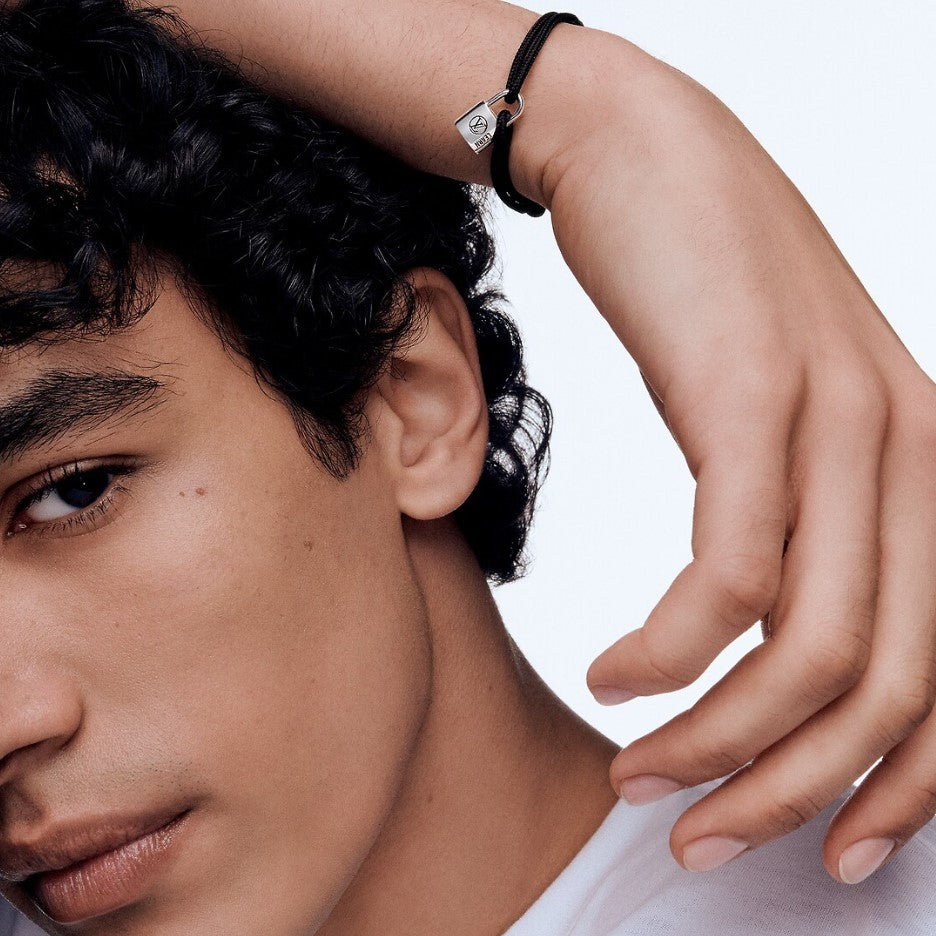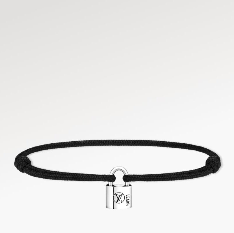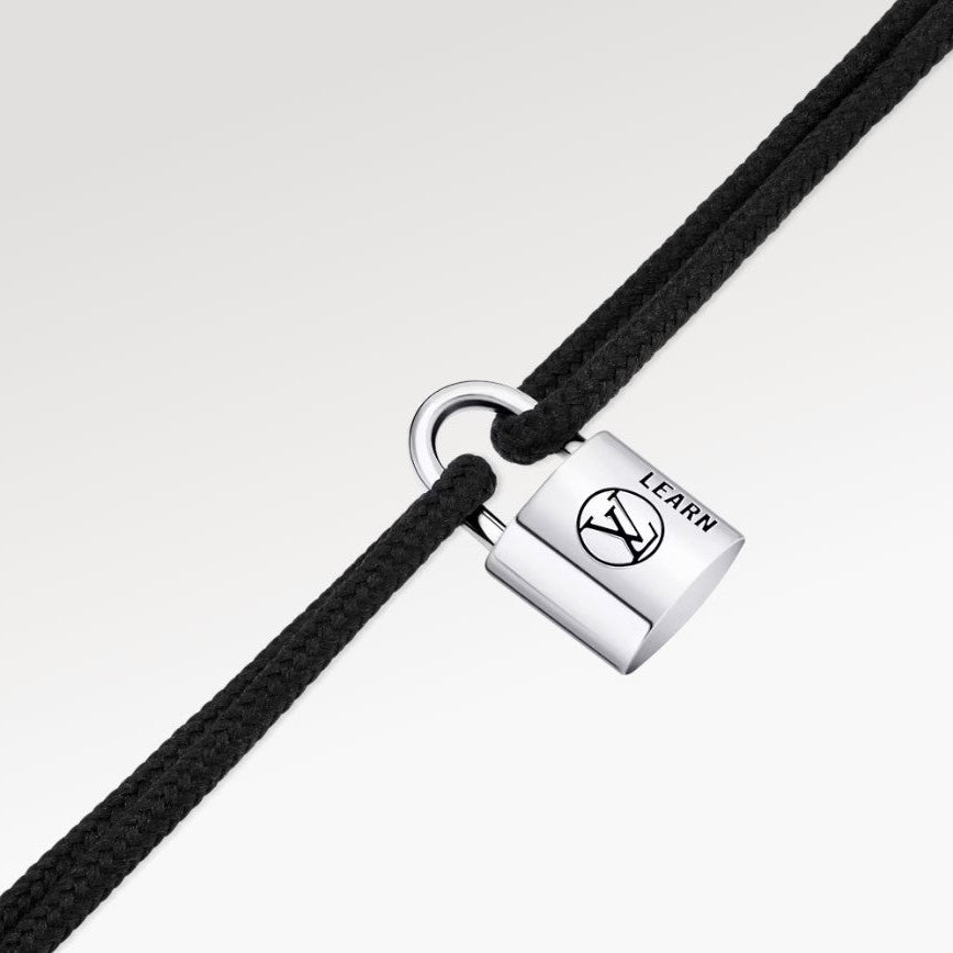 The limited edition Silver Lockit bracelet exudes a modern, unisex design that can be worn alone or layered with other pieces. The delicate padlock is made of 925 silver and features the lacquered LV logo and the word Learn, which represents the wearer's commitment to helping children. For each piece sold, Louis Vuitton will donate $100 to UNICEF.