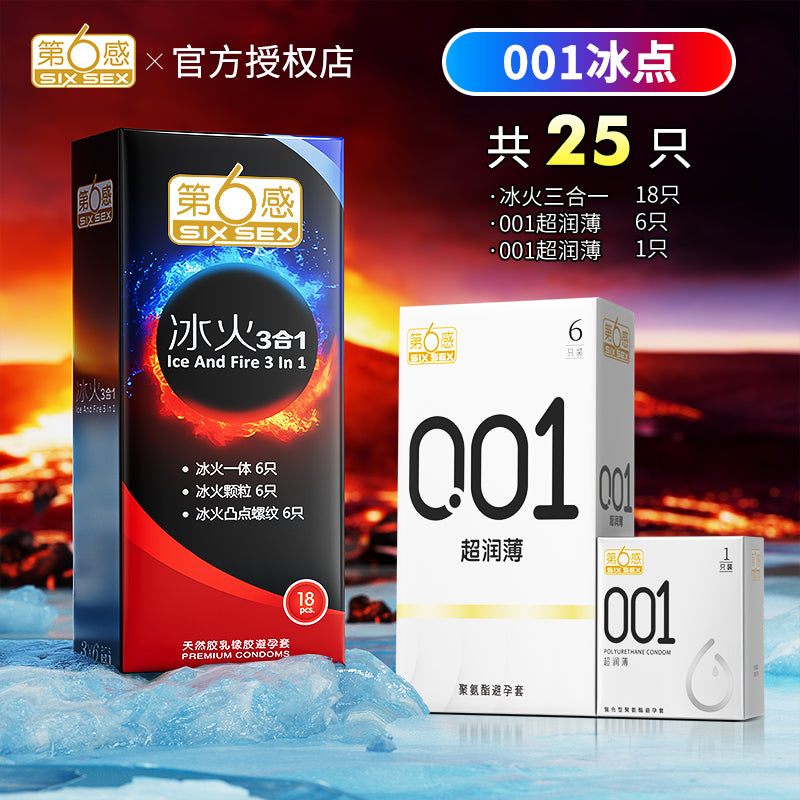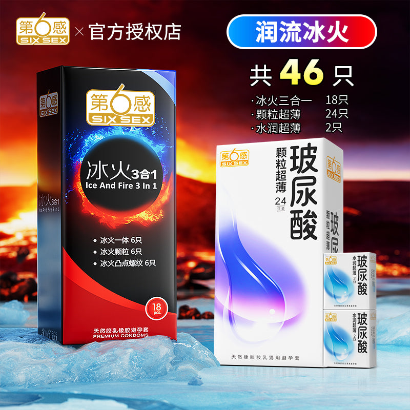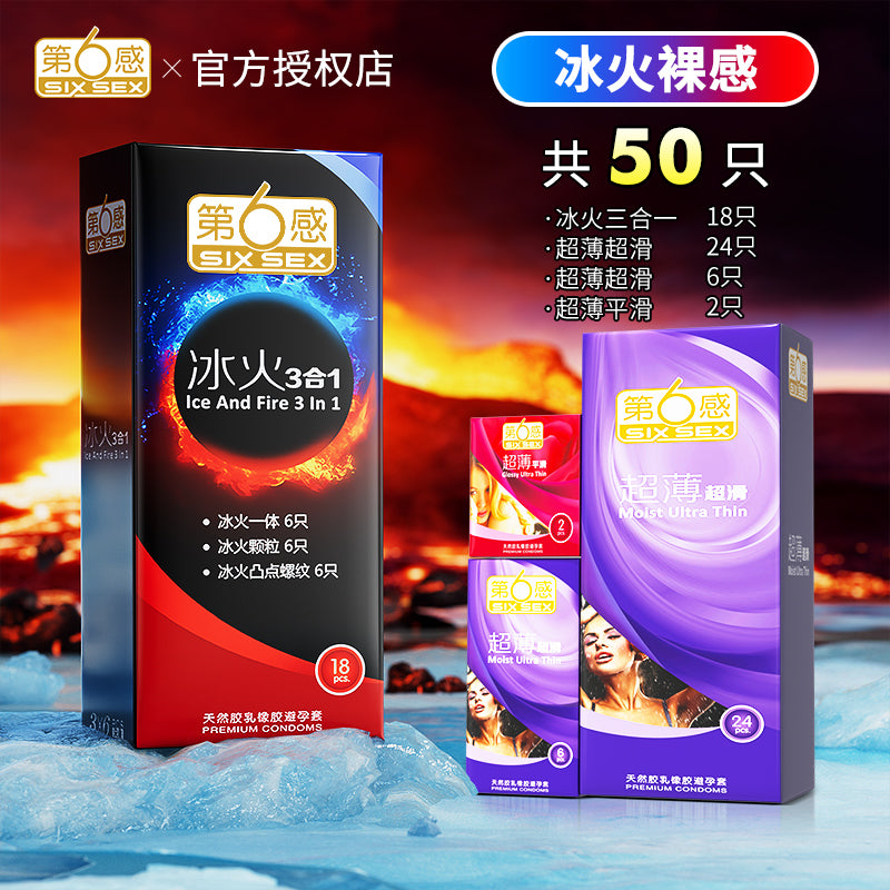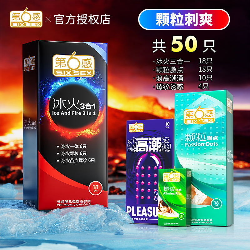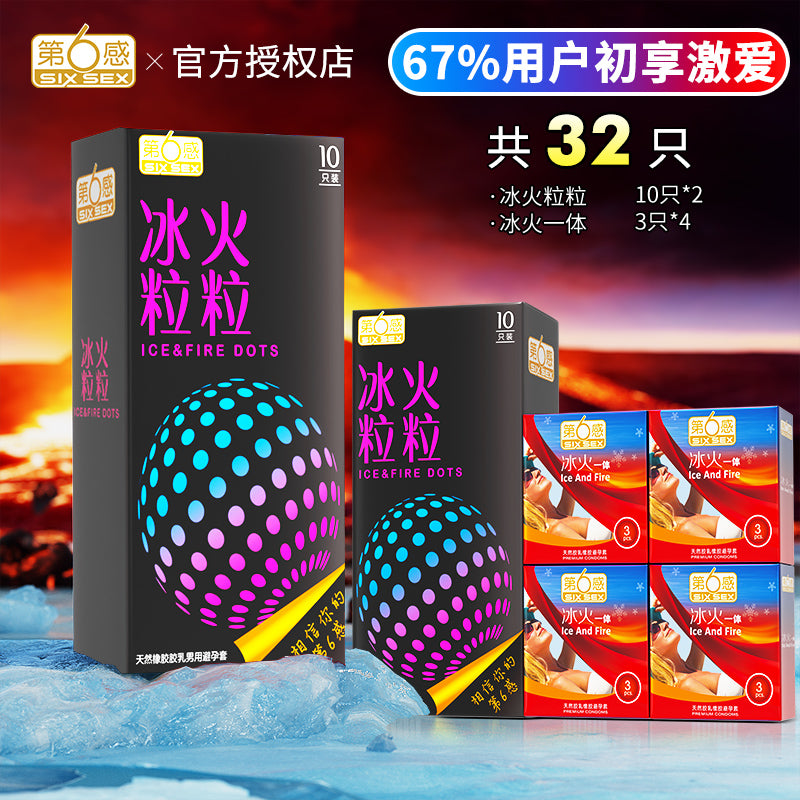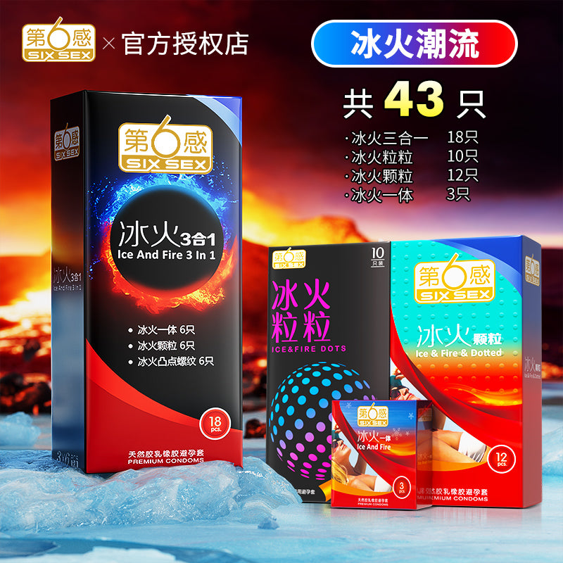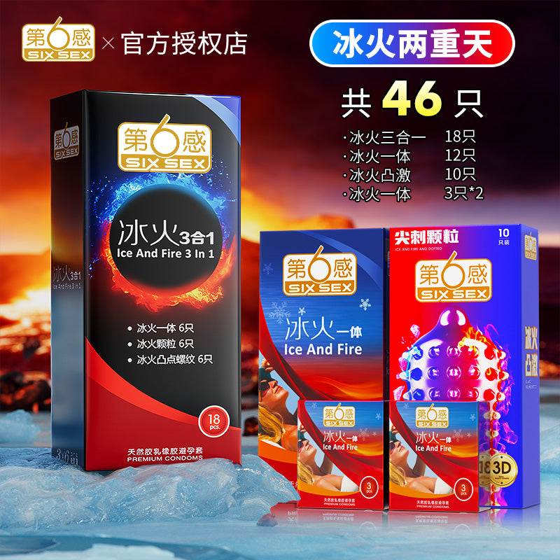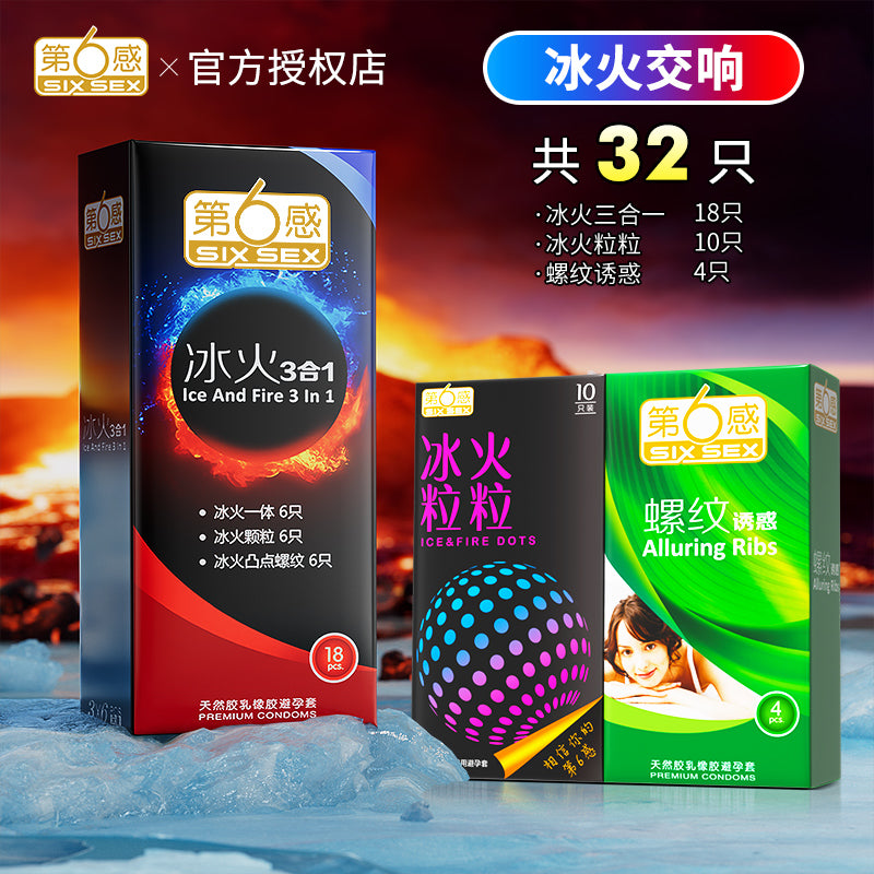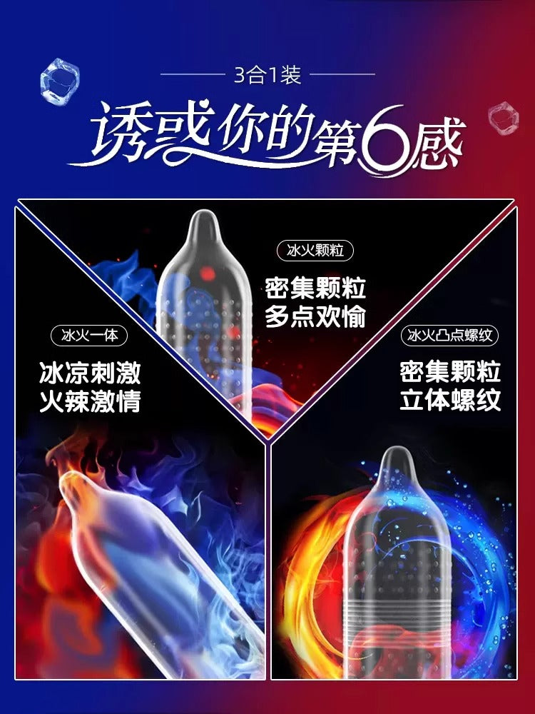 Sixth Sense Ice and Fire Double Heaven Condom Stimulates Clitoral Fun Perverted Male Female Cold Granular Condom