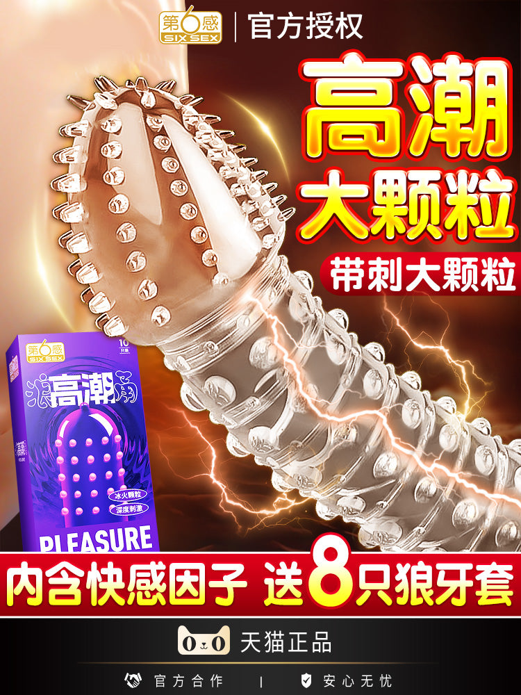 Sixth sense orgasm condom sex fun perverted wolf tooth cover with thorns large particles men's genuine flagship store condom