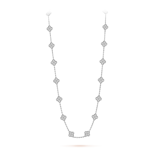 复古 Alhambra 长项链,20 个图案,18K 镀铑白金,圆形钻石;钻石品质 DEF、IF 至 VVS。 参考 VCARA43300 石头 宝石钻石:240 颗,9.66 克拉 卡扣...