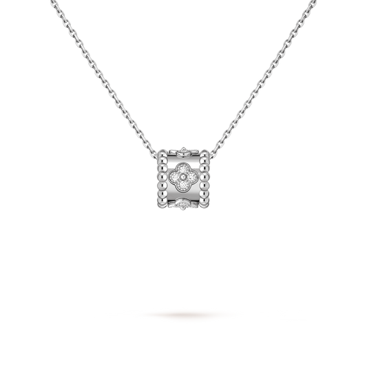 Perlée 三叶草吊坠,18K 镀铑白金,圆形钻石;钻石品质 DEF、IF 至 VVS。 参考 VCARO2EF00 石头 宝石钻石:16 颗,0.18 克拉 卡扣 18K 白金扣环...