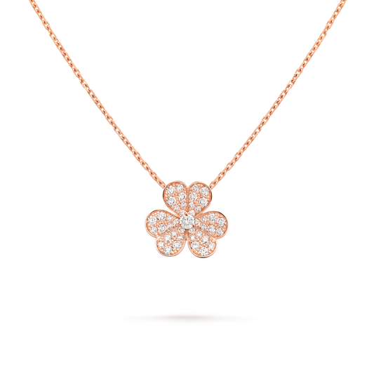 Frivole 吊坠,小款,18K 玫瑰金,圆形钻石;钻石品质 DEF、IF 至 VVS。吊坠与项链链相连 参考 VCARP7RL00 石头 宝石钻石:43 颗,0.77 克拉 卡扣 18K 玫瑰金扣环...