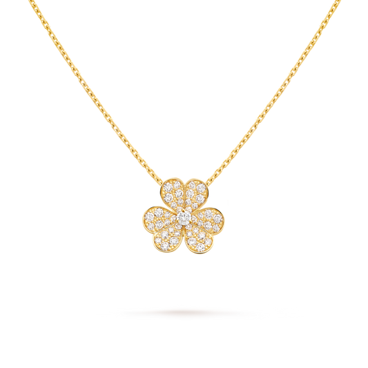 Frivole 吊坠,小款,18K 黄金,圆形钻石;钻石品质 DEF、IF 至 VVS。吊坠与项链链相连 参考 VCARP2V100 石头 宝石钻石:43 颗,0.77 克拉 卡扣 18K 黄金扣环...