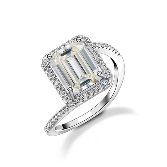 4 carat 8 * 10mm rectangular chamfered mozzarella diamond ring women's 925 sterling silver niche design high-end European and American jewelry