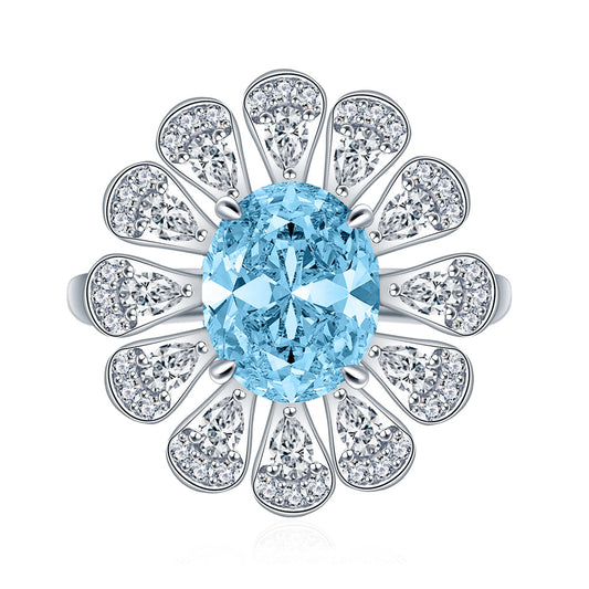 3ct Royal Sapphire Flower Ring Women's 925 Sterling Silver 8 * 10 Egg Shaped European and American High-end Princess Diana Jewelry