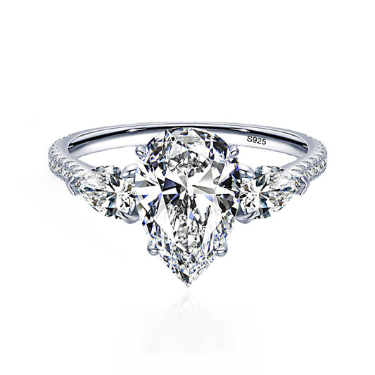 4 carat special-shaped 8 * 12 water drop mozzarella diamond ring women's S925 sterling silver simulation diamond ring European and American ins live stream jewelry