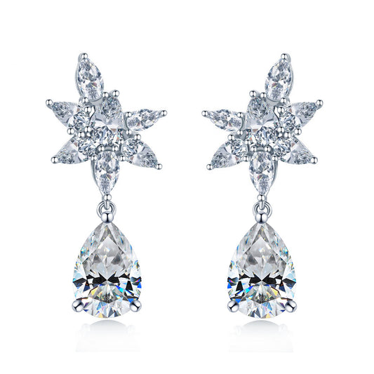 4ct water drop mozzarella diamond earrings women's 925 silver 8 * 12mm pear-shaped earrings European and American fashion dinner party high jewelry