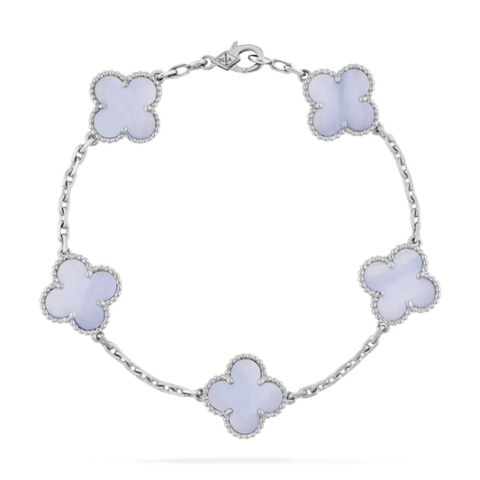 复古 Alhambra 手链,5 个图案,镀铑 18K 白金,玉髓。