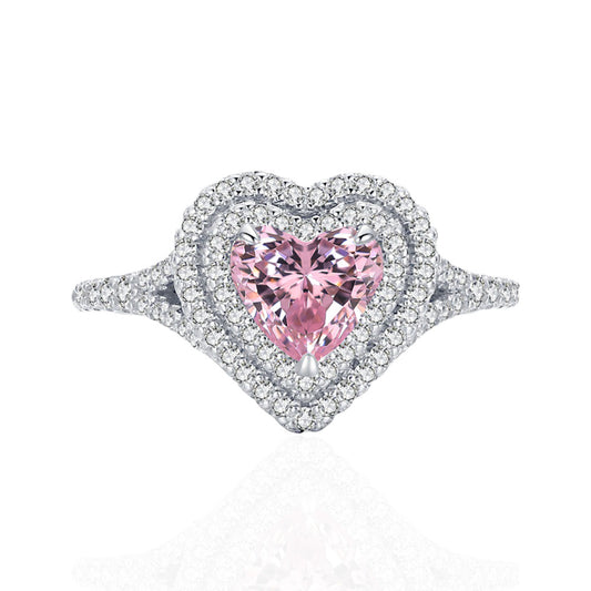 1.4ct love-shaped 6mm yellow diamond slightly inlaid with diamond S925 sterling silver ring women's fashion simple light luxury jewelry wholesale