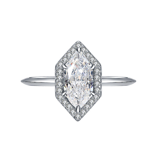 1.4ct sea blue 5 * 10mm horse eye high carbon diamond ring women's 925 silver diamond ring high-end European and American cross-border jewelry