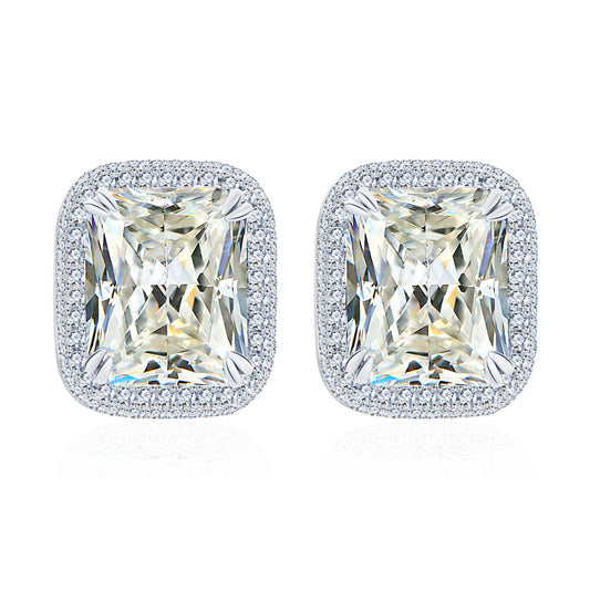 10 carat 10 * 12 high carbon diamond sea blue zirconium stud earrings women's S925 sterling silver Redeen ear jewelry European and American ins jewelry