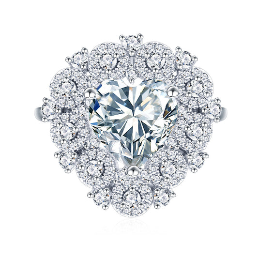10 * 10Mm heart-shaped mozzarella diamond 4 carat sterling silver romantic garden ring for women, European and American ladies, luxury diamond ring accessories