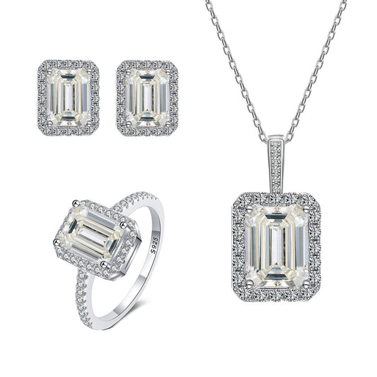 2 carat emerald cut 6 * 8 rectangular circumference mozzarella diamond ring women's 925 silver D color moissanite ring cross-border