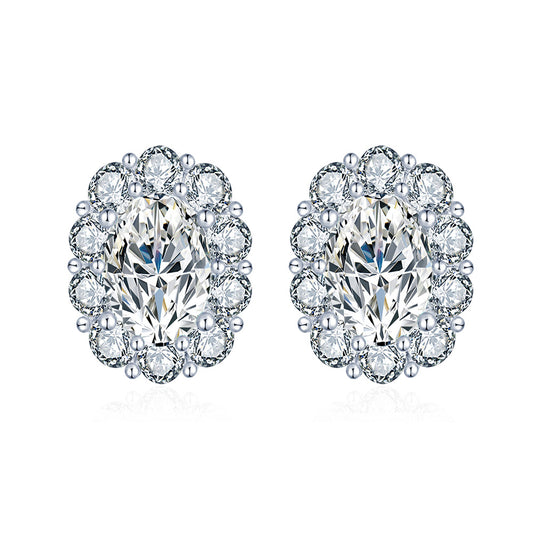 2 carat 7 * 9 pigeon egg moissanite stud earrings S925 sterling silver European and American ladies elegant high-end ear jewelry wholesale