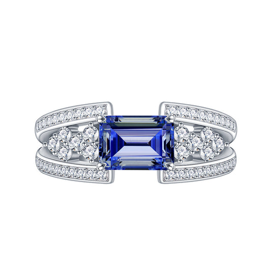 2.5ct rectangular 6 * 8mm Tanzanian sapphire sterling silver ring for women, Europe, America, cross-border light luxury fashion factory direct sales jewelry