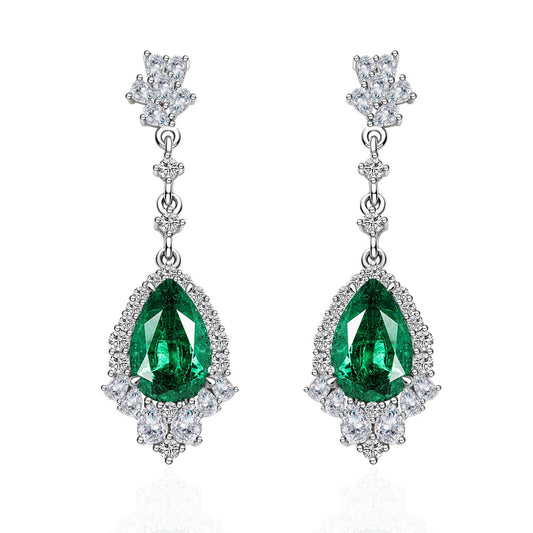 2.2ct pear-shaped 8 * 12 Columbia wood green earrings women's 925 sterling silver long stud earrings European and American retro jewelry