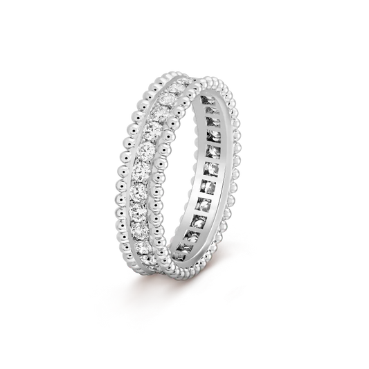 Perlée pearls of gold ring, medium model, rhodium-plated 18K white gold.