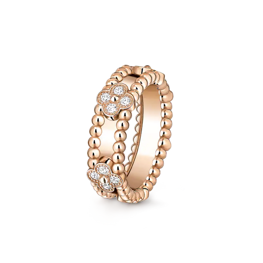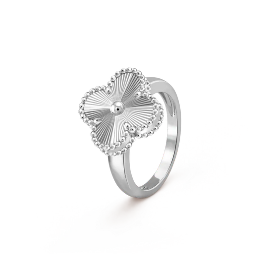 Vintage Alhambra ring, guilloché rhodium-plated 18K white gold.
