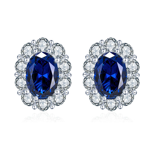 7 * 9 oval simulation with cotton emerald stud earrings female 925 sterling silver earrings European and American cross-border live broadcast jewelry wholesale
