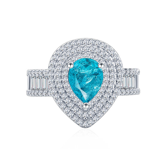 Slightly set with diamonds set with 7 * 9mm water drop shape 1.5 carat S925 sterling silver emerald gemstone ring female European and American style