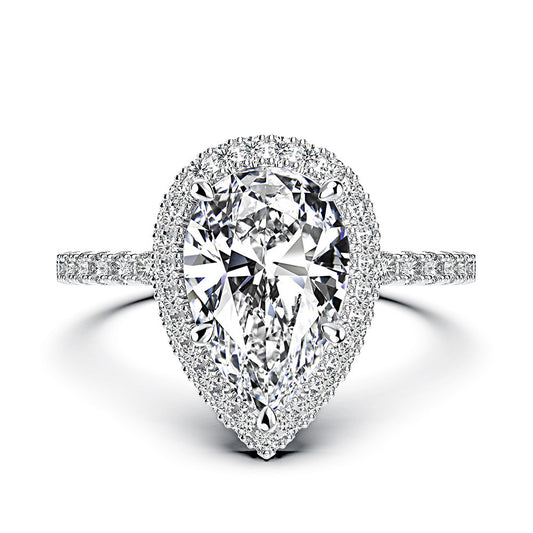 0.5ct pear-shaped 4 * 6mm mozzarella diamond S925 sterling silver ring women's fashion versatile simple diamond ring cross-border silver jewelry