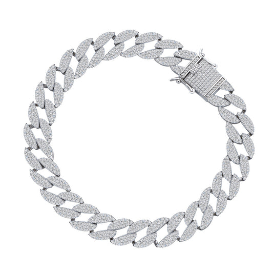 European and American hip hop Cuban chain S925 sterling silver bracelet unisex micro-inlaid with rough diamond chain trendy cross-border jewelry