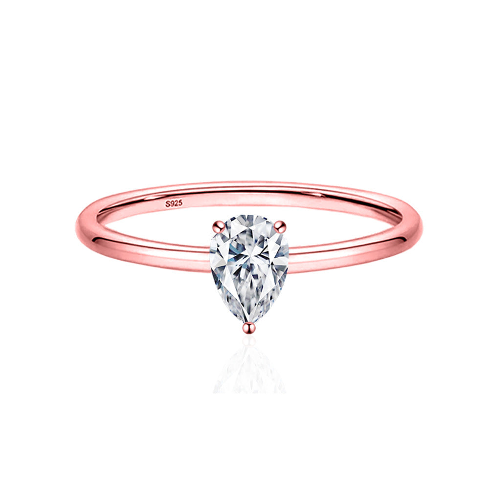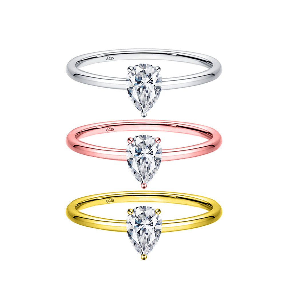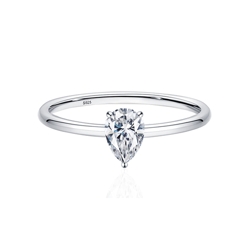 0.5ct pear-shaped 4 * 6mm mozzarella diamond S925 sterling silver ring women's fashion versatile simple diamond ring cross-border silver jewelry