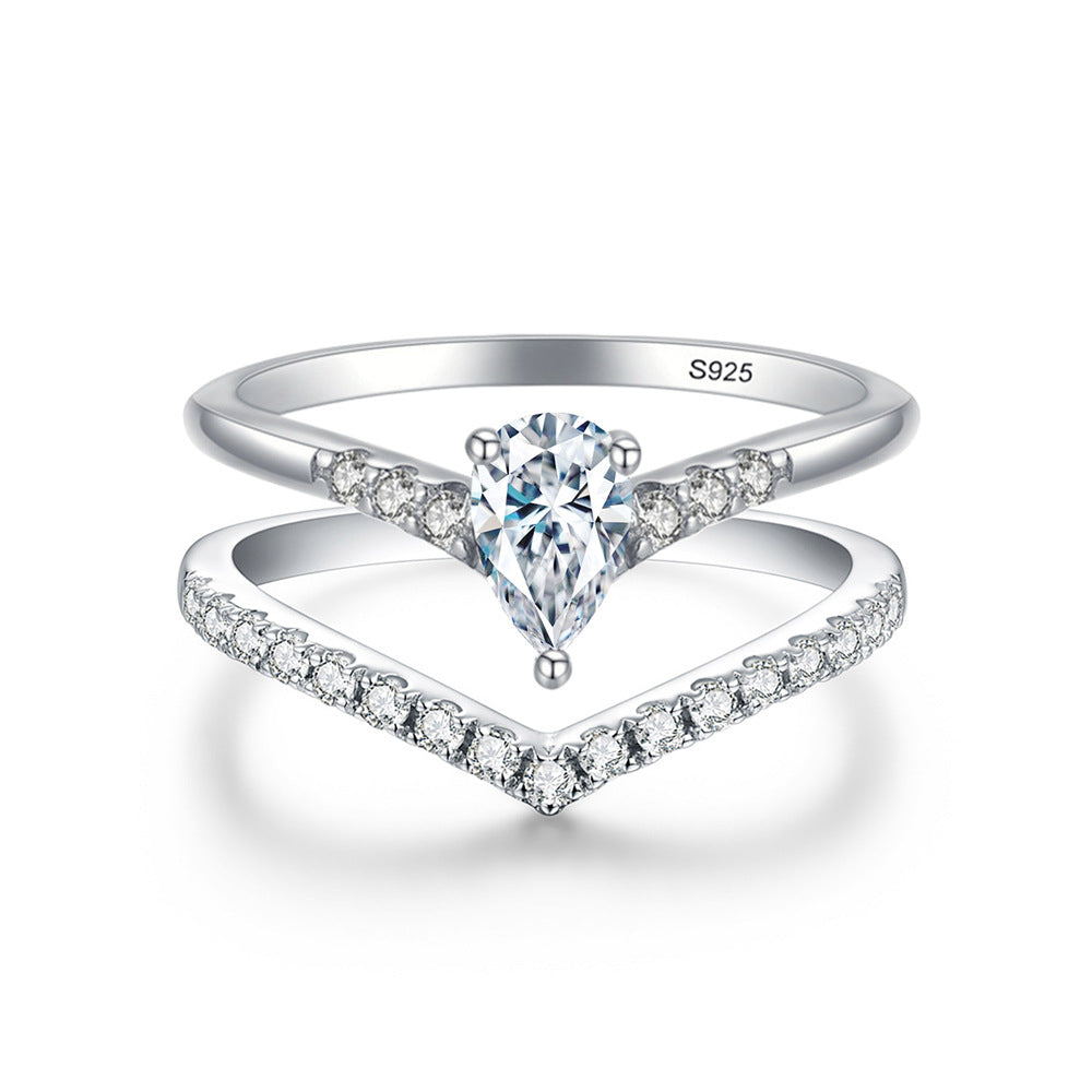 0.5ct special-shaped water drop 4 * 6mm mozzarella diamond ring women's S925 sterling silver stacked wind pair ring Douyin live broadcast jewelry