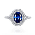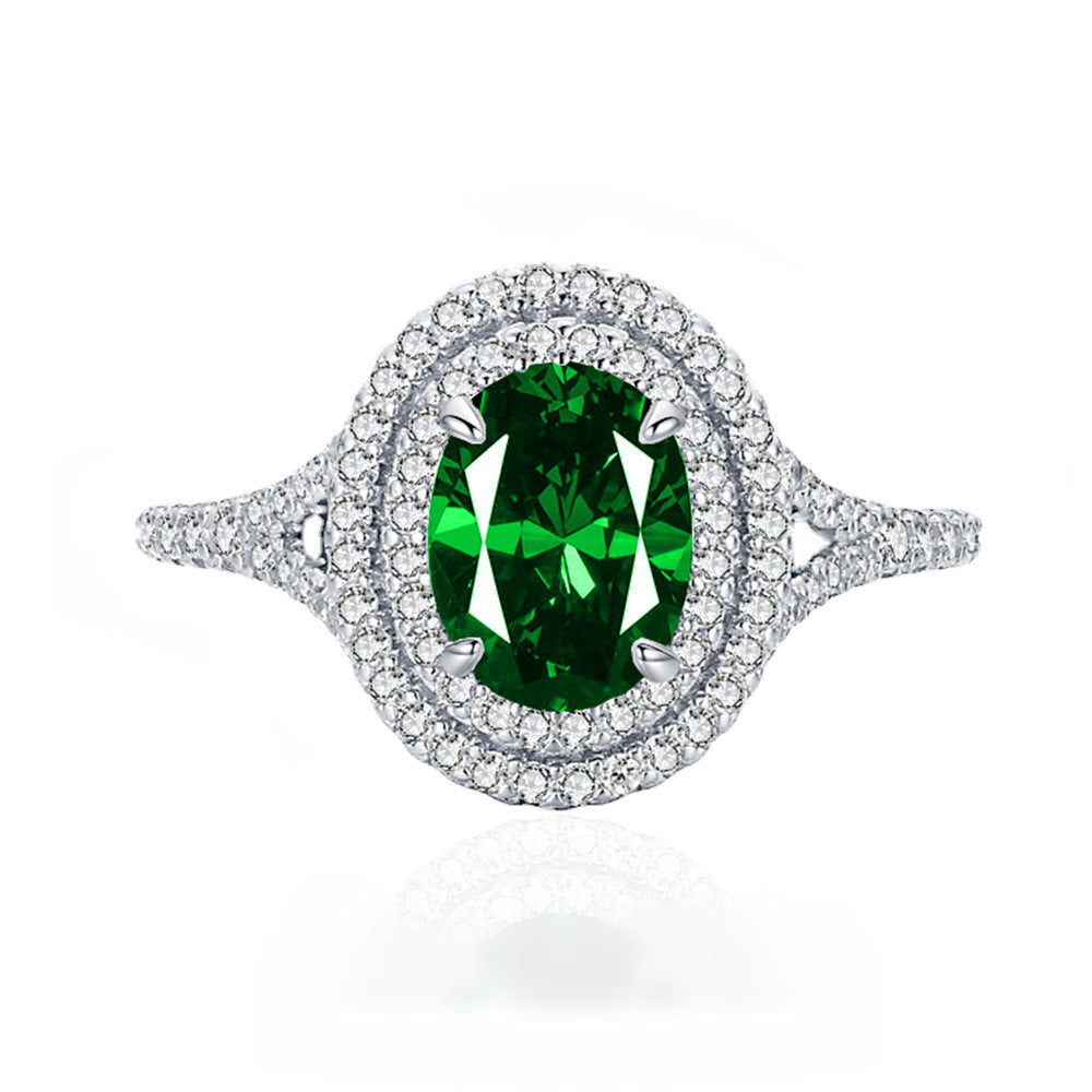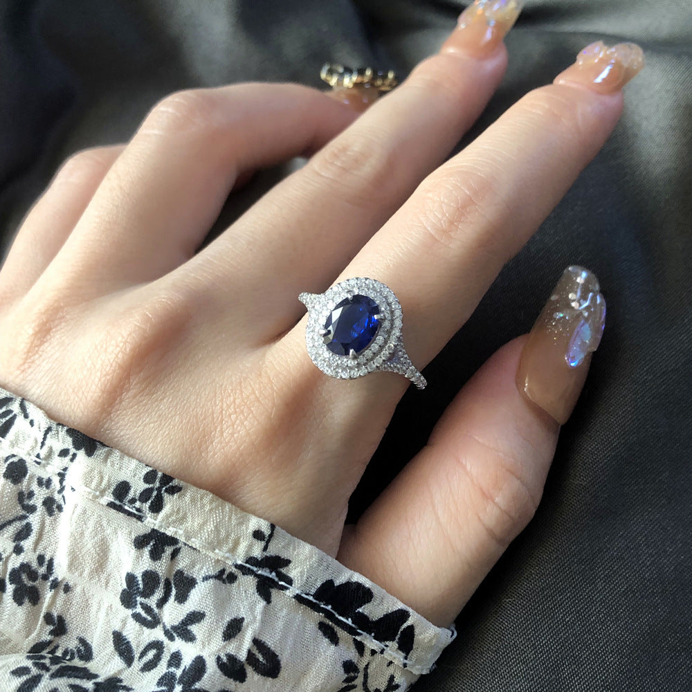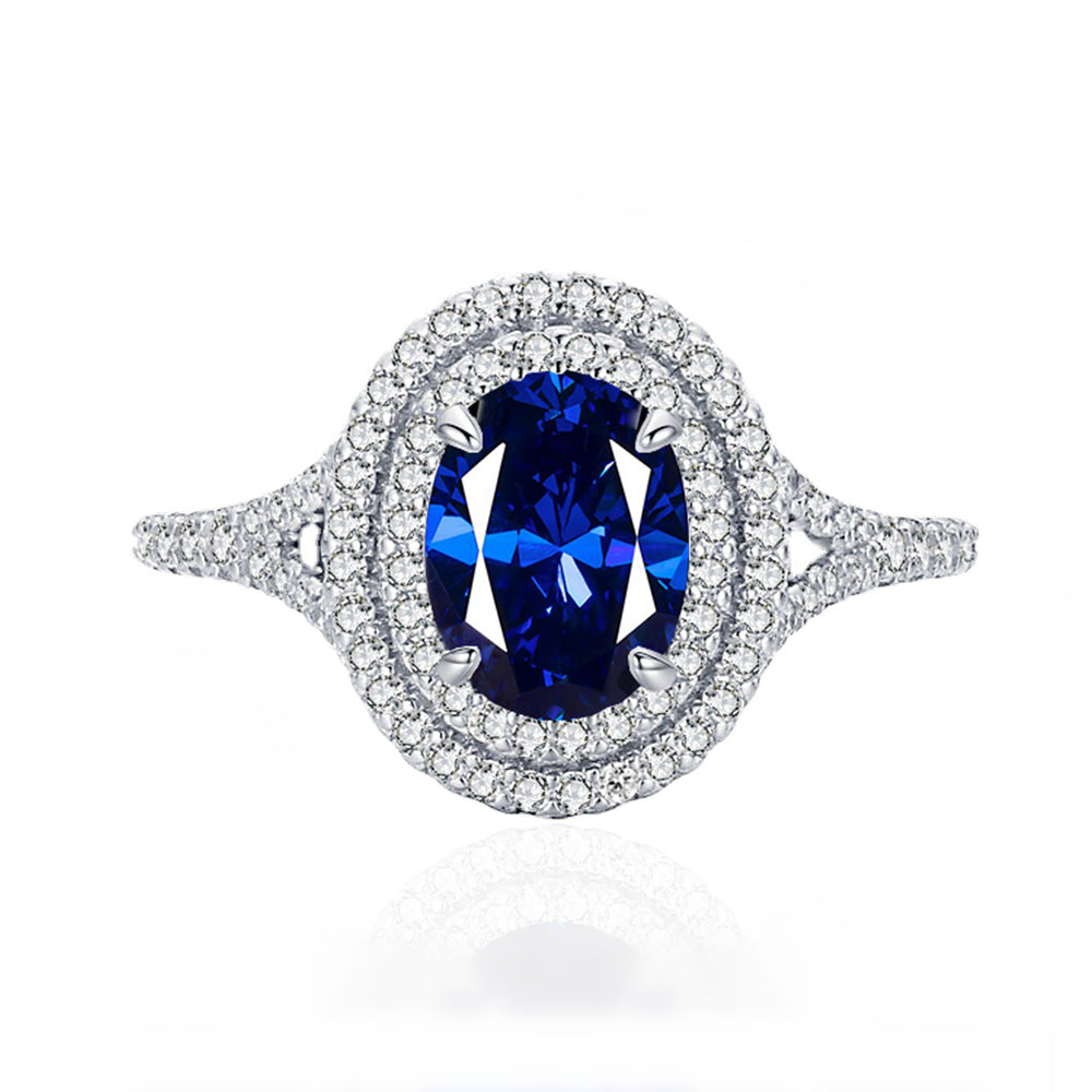 0.9ct inlaid 6 * 8 pigeon egg sapphire ring women's S925 silver European and American fashion colored treasure ring hot wholesale