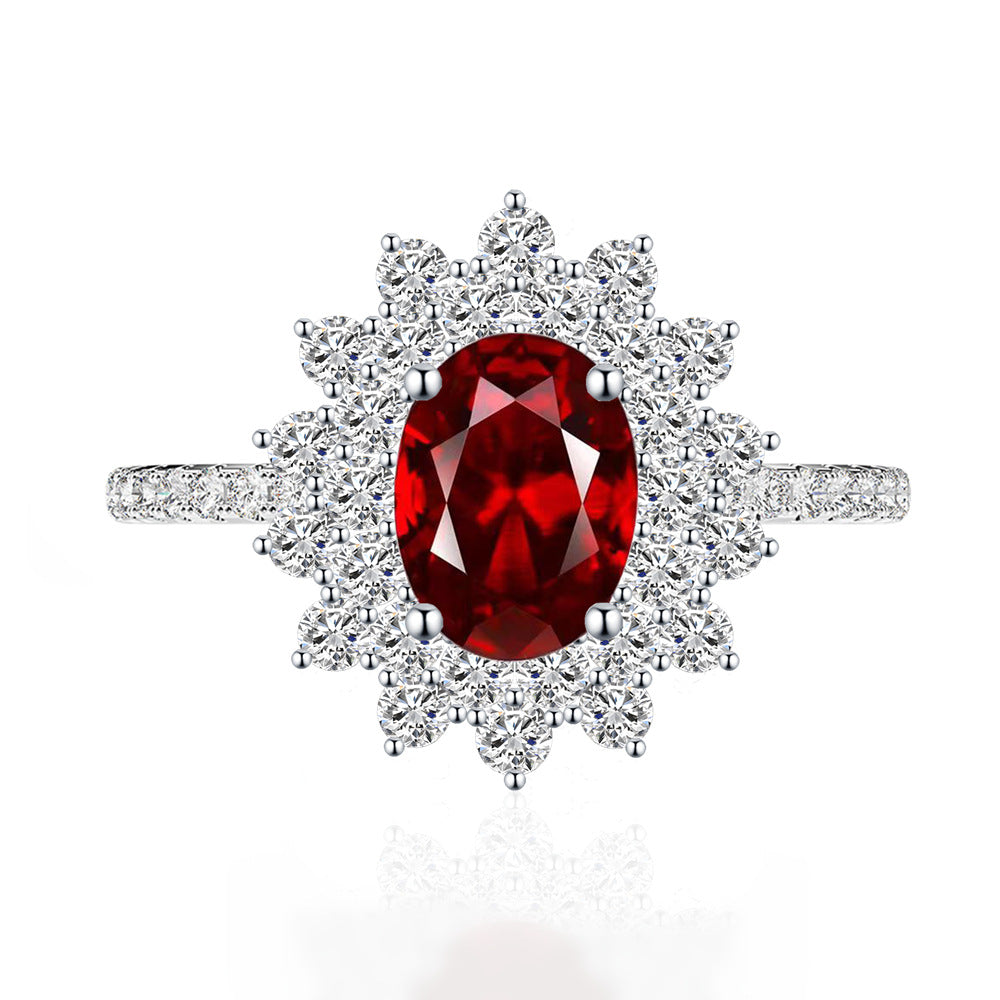 0.9ct Oval 6 * 8 Pigeon Blood Ruby S925 Sterling Silver Ring Women's European and American Cross-border High Jewelry Set