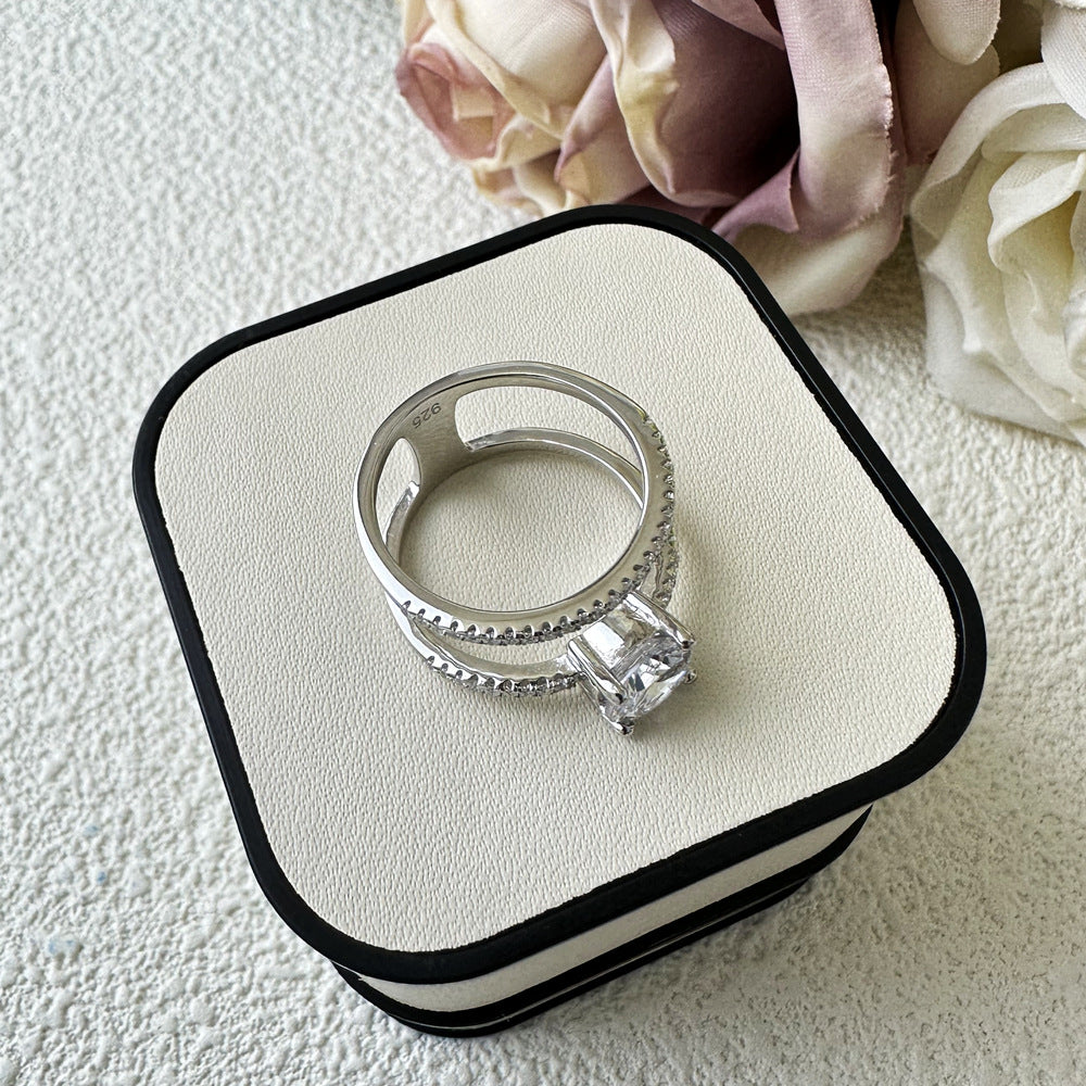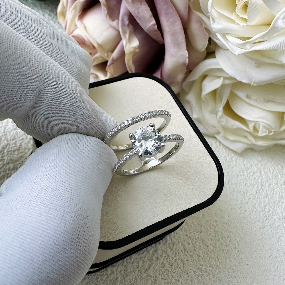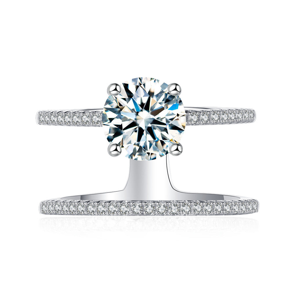 1.25 carat 7mm mozzarella diamond ring women's 925 sterling silver double-layer line European and American light luxury high-end cross-border jewelry