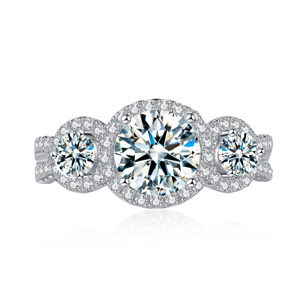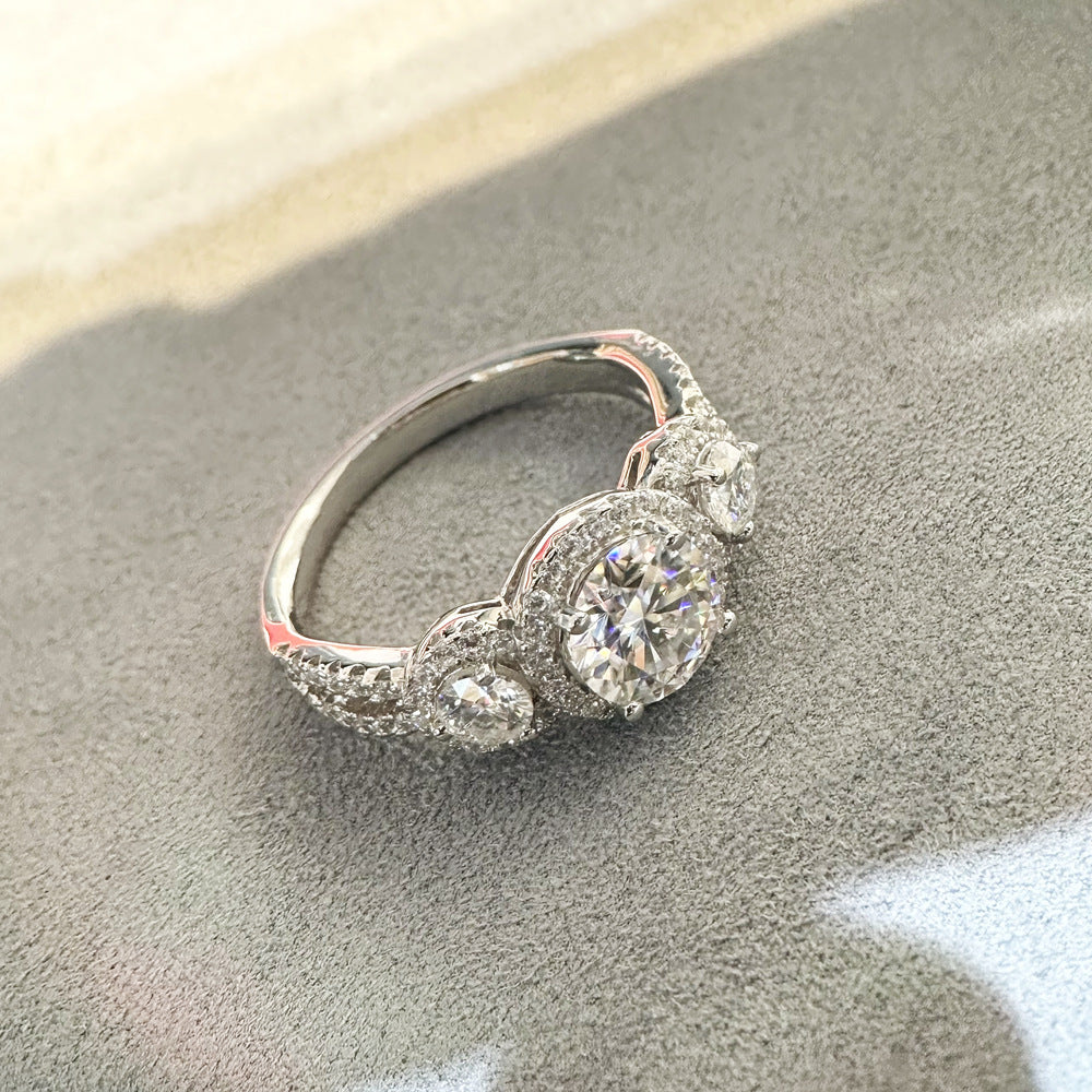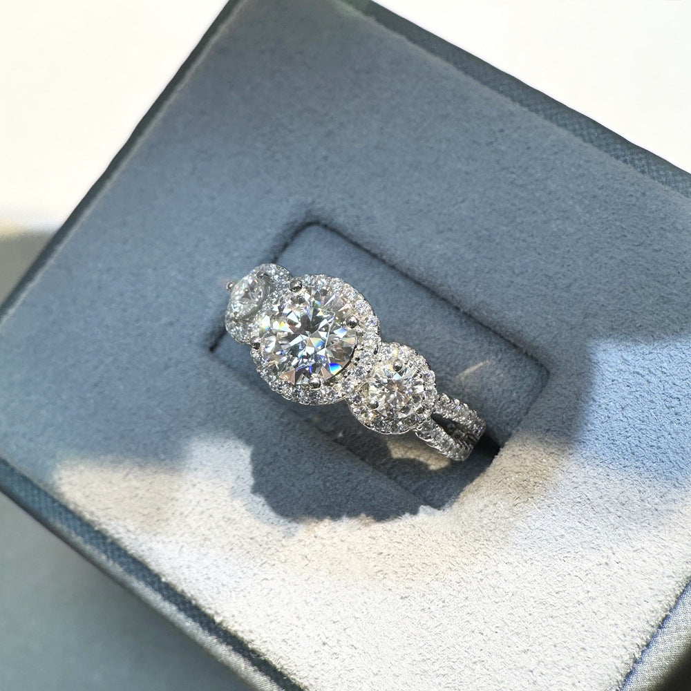 1.25ct moissanite ring European and American light luxury ins style high-end sense 925 sterling silver diamond ring female Douyin live broadcast jewelry