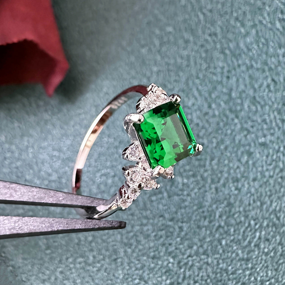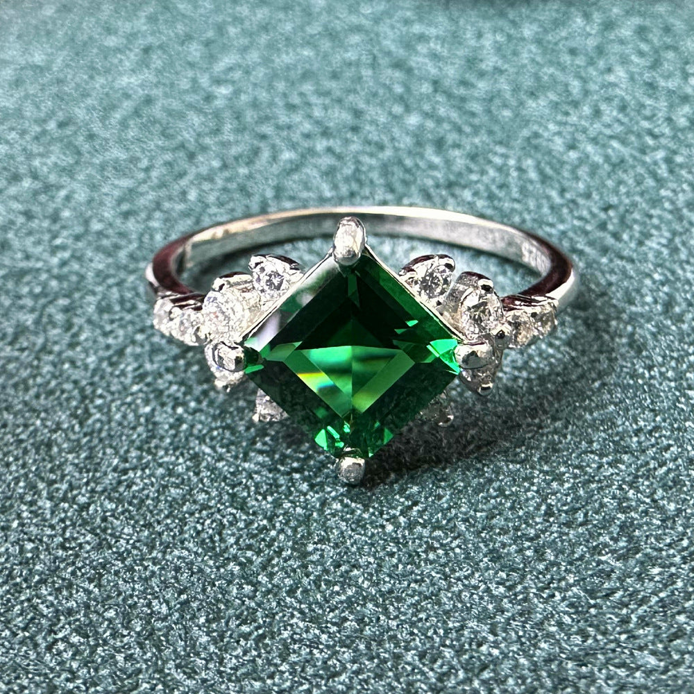 1.3 small carat square 7 * 7mm simulation emerald sterling silver ring women's high-end live broadcast jewelry wholesale