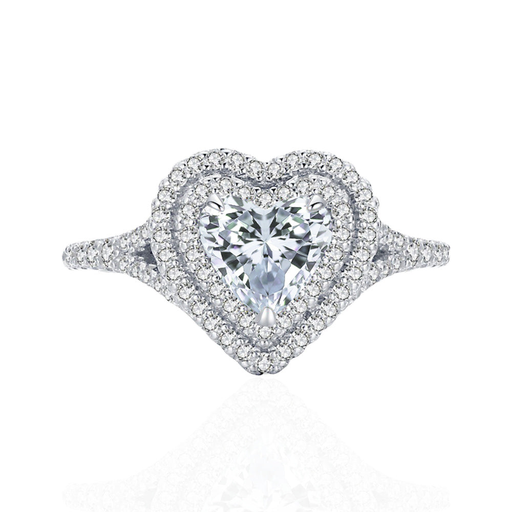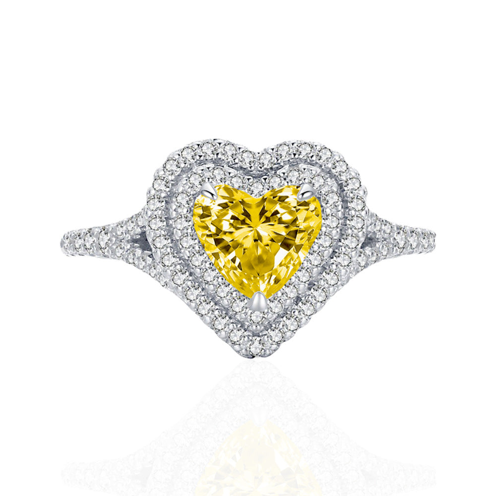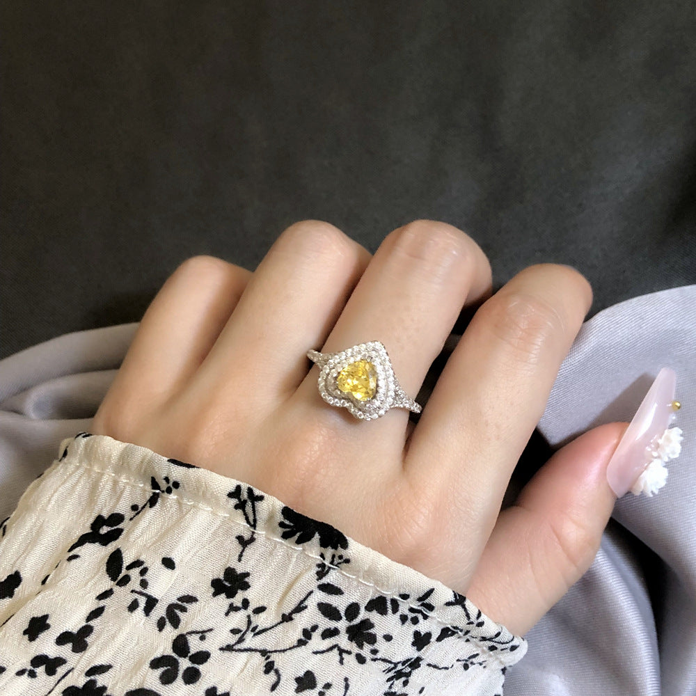 1.4ct love-shaped 6mm yellow diamond slightly inlaid with diamond S925 sterling silver ring women's fashion simple light luxury jewelry wholesale
