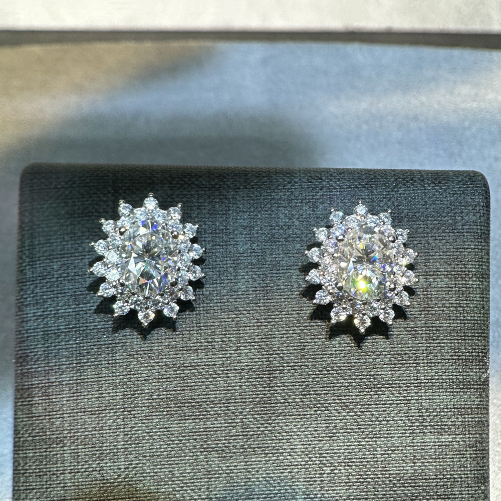 1.5 carat 6 * 8 oval moissanite stud earrings women's S925 silver earrings classic popular live broadcast hot-selling light luxury earrings