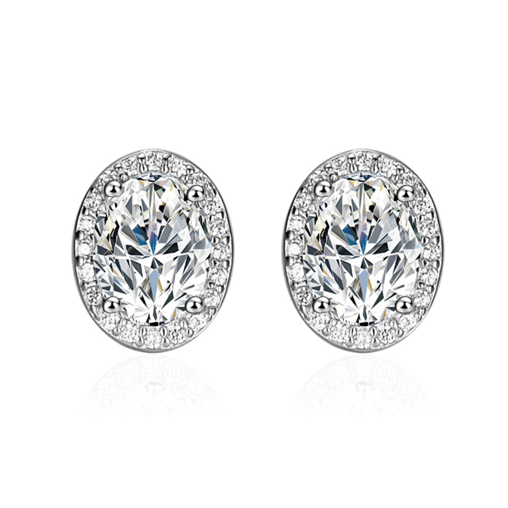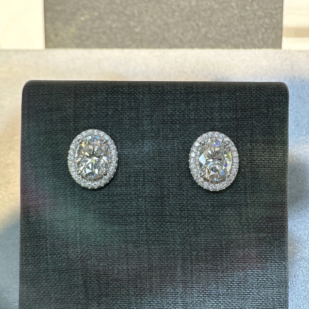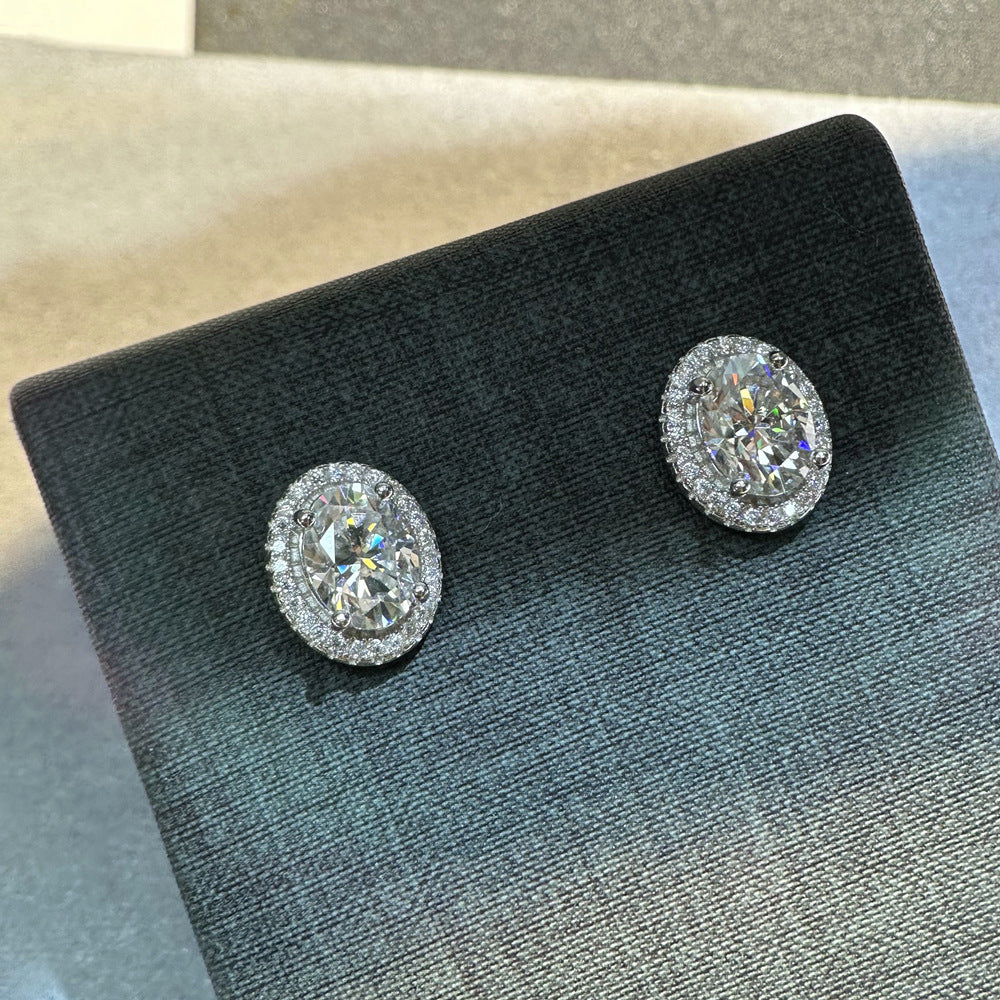 1.5 carat egg-shaped moissanite stud earrings women's S925 sterling silver 6 * 8mm oval earrings classic simple earrings wholesale