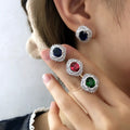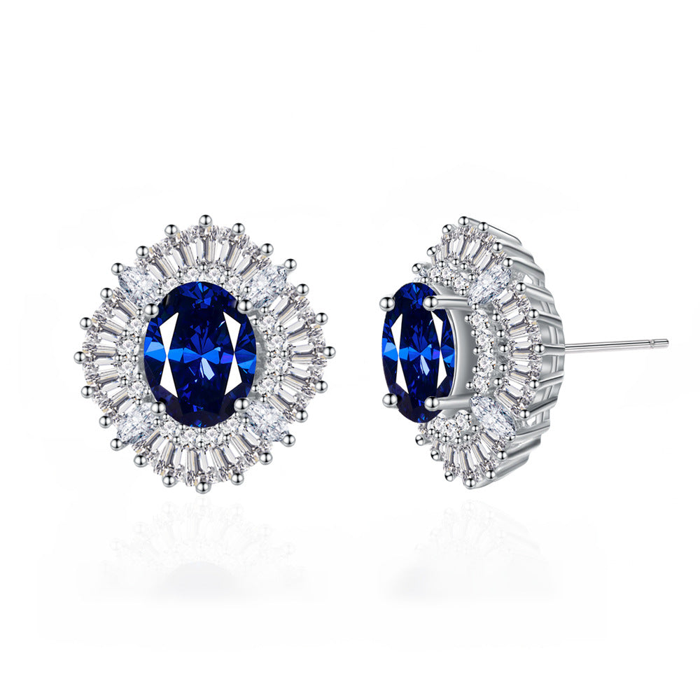 1.7ct pigeon egg 7 * 9mm royal sapphire stud earrings women's sterling silver European and American cross-border light luxury banquet retro earrings