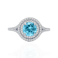 1.7ct round circumference full of diamonds 6.5mm light sea blue S925 sterling silver ring women's high-end ring hot-selling jewelry