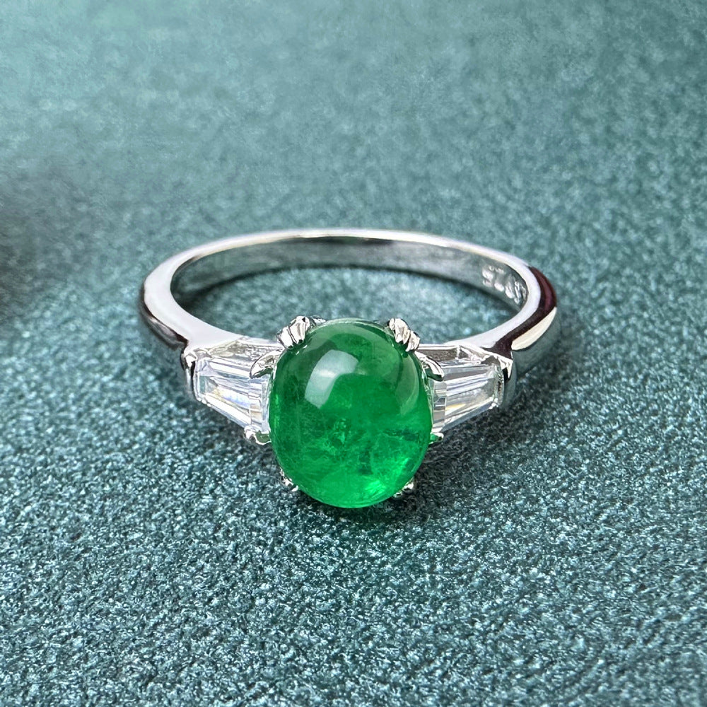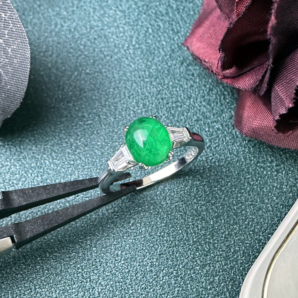 1.7ct small carat 7 * 8mm egg surface simulation emerald sterling silver ring women's live stream supply jewelry wholesale
