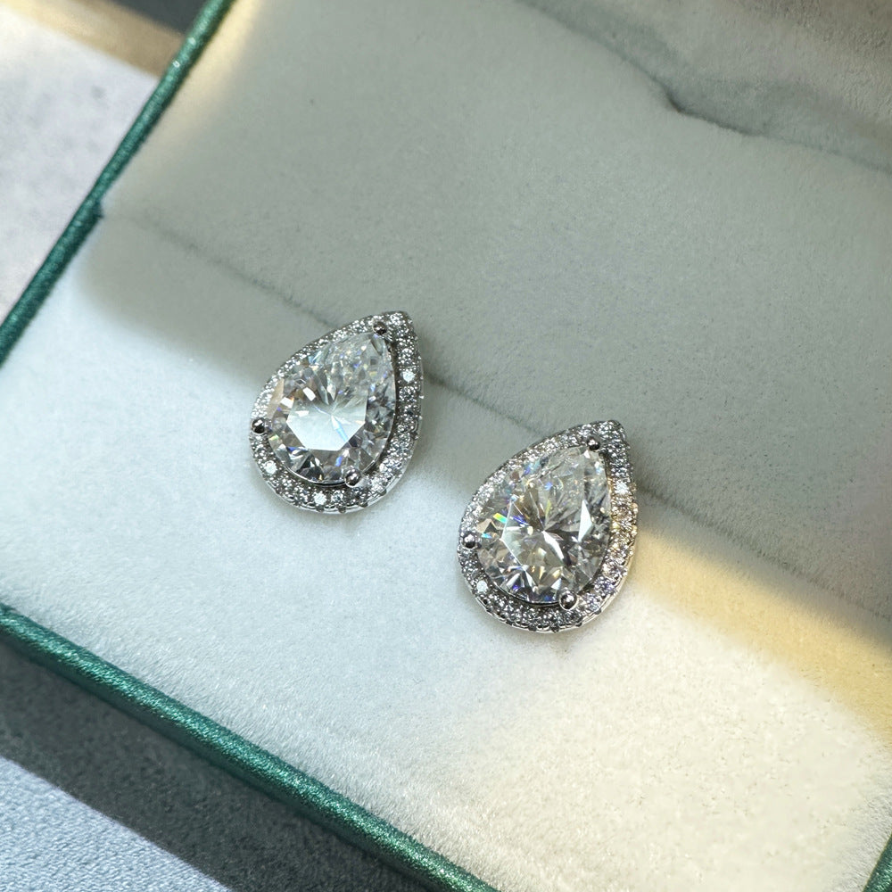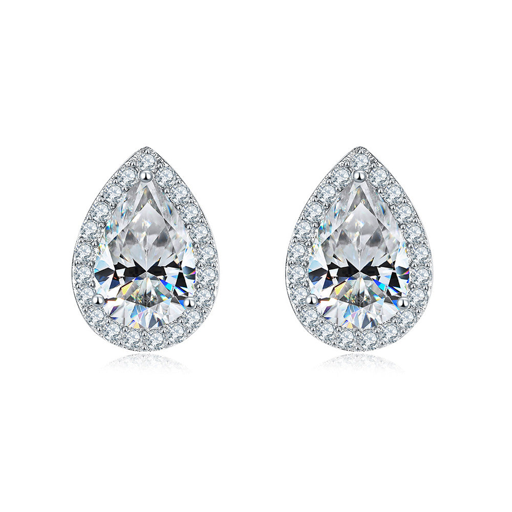 1.8ct water drop-shaped mozzarella diamond stud earrings women's 925 sterling silver simulation diamond earrings simple classic full diamond ear jewelry