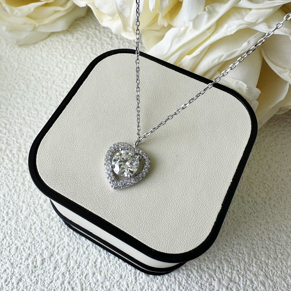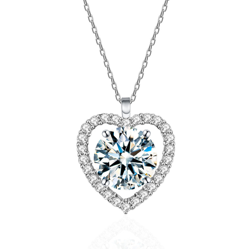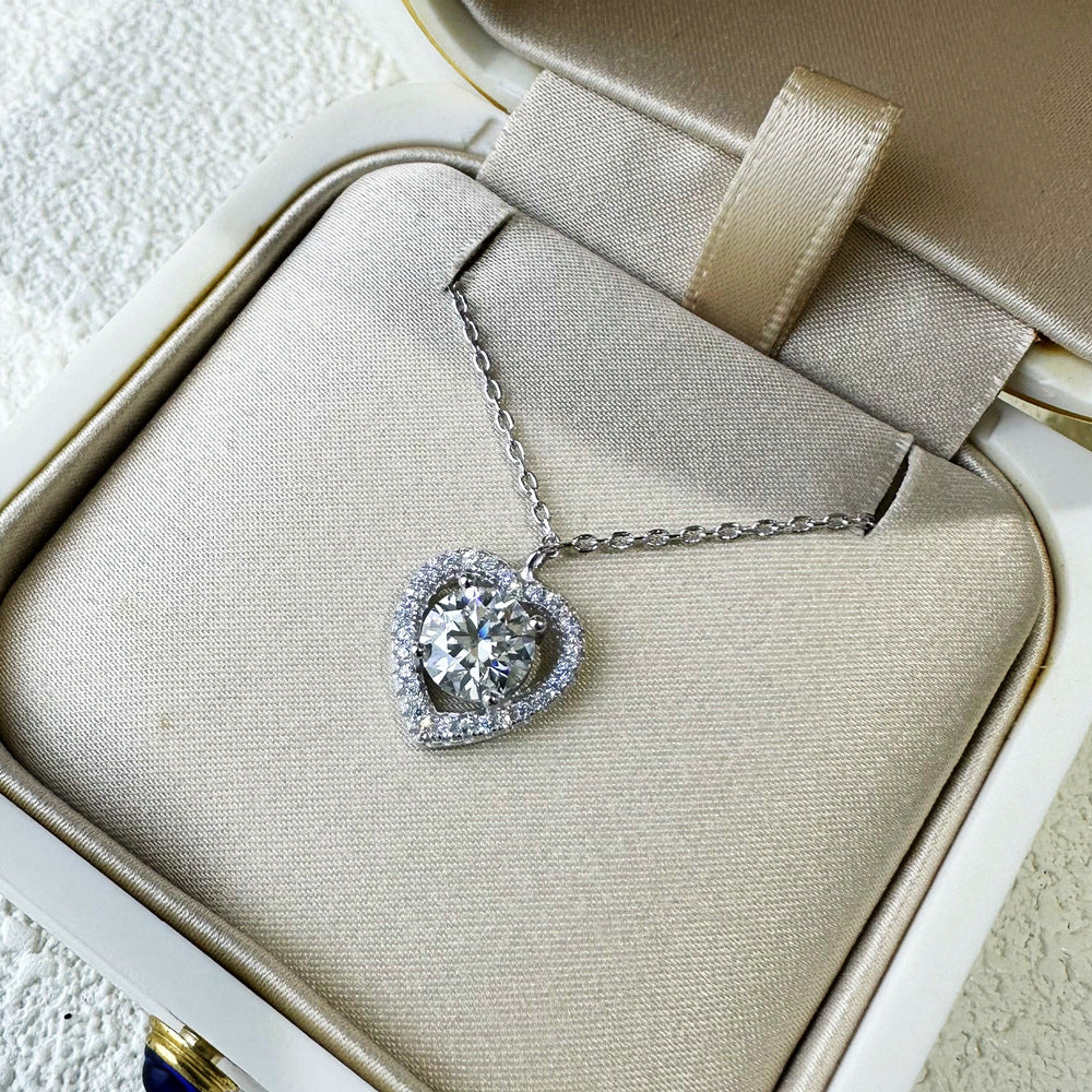 1 carat 6.5mm mozzarella diamond necklace women's S925 silver heart pendant fashion versatile temperament live broadcast hot-selling jewelry
