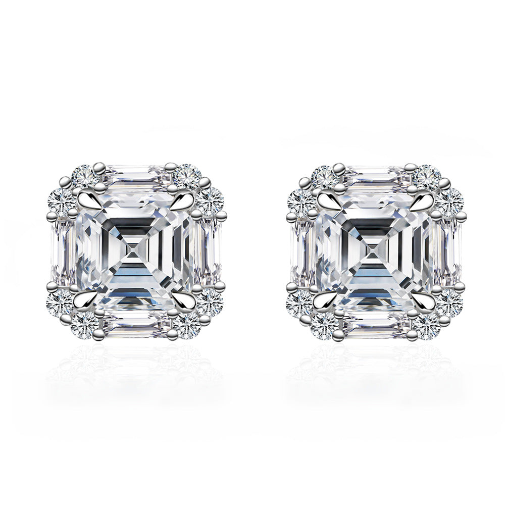 1 carat 6 * 6mm square asche mozzarella diamond stud earrings women's S925 sterling silver earrings live broadcast hot-selling fashion accessories